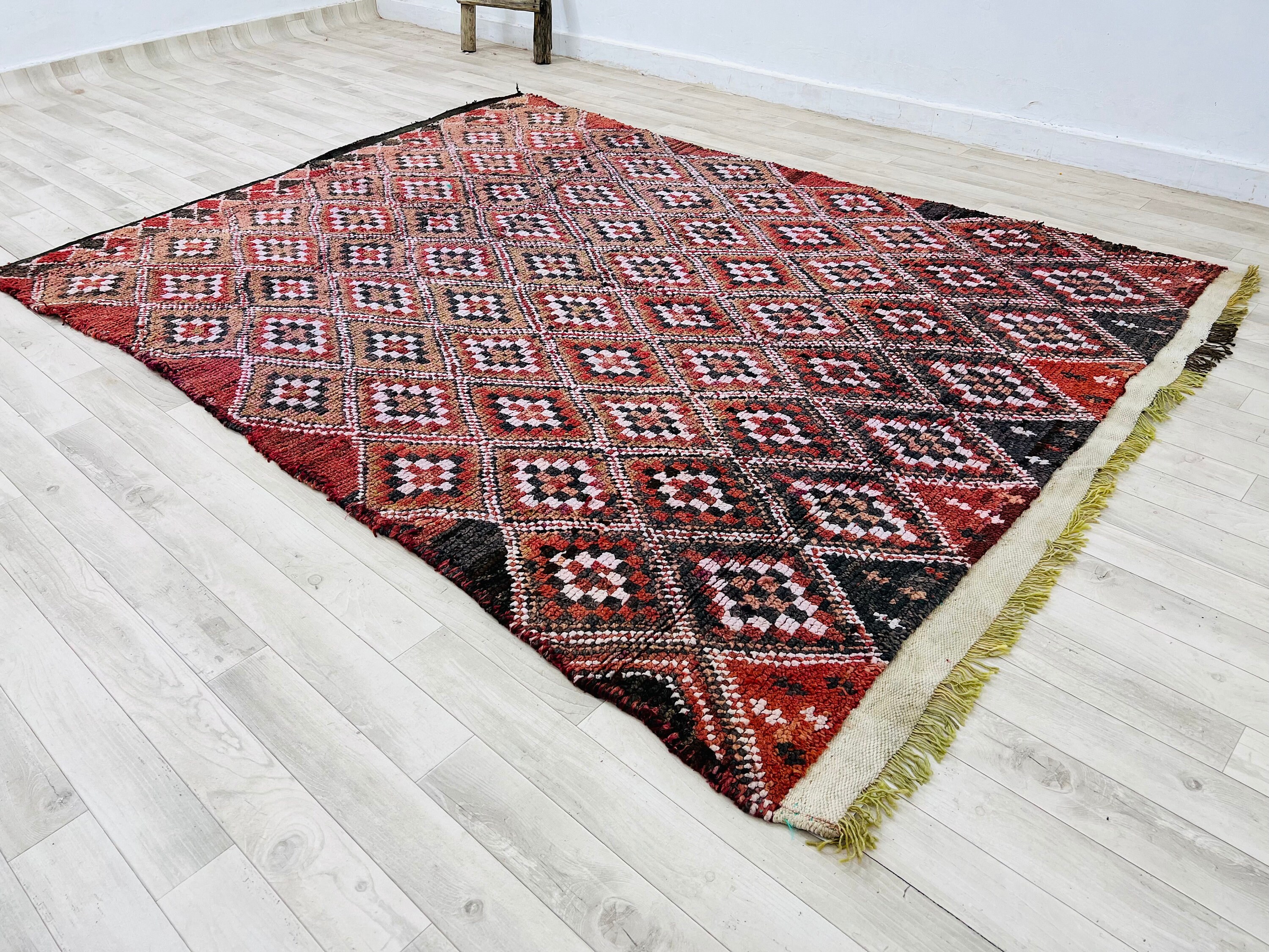 Amazing rug from High-Atlas Morocco was made by Berber women with naturally dyed wool, which means this carpet is 100% natural.