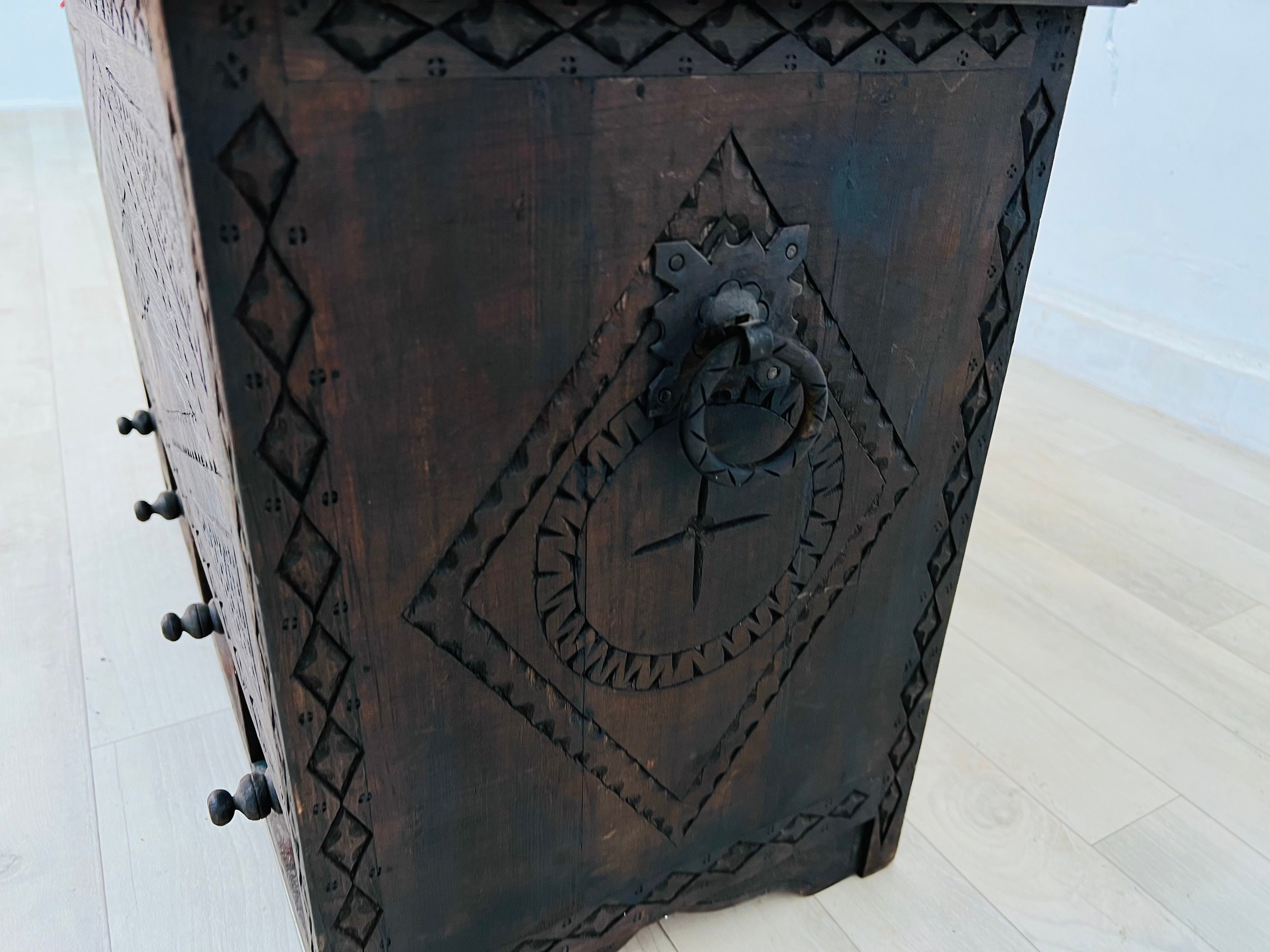 Wooden Box with Berber traditional Moroccan design Vintage Berber Wooden Chest made in Morocco.
