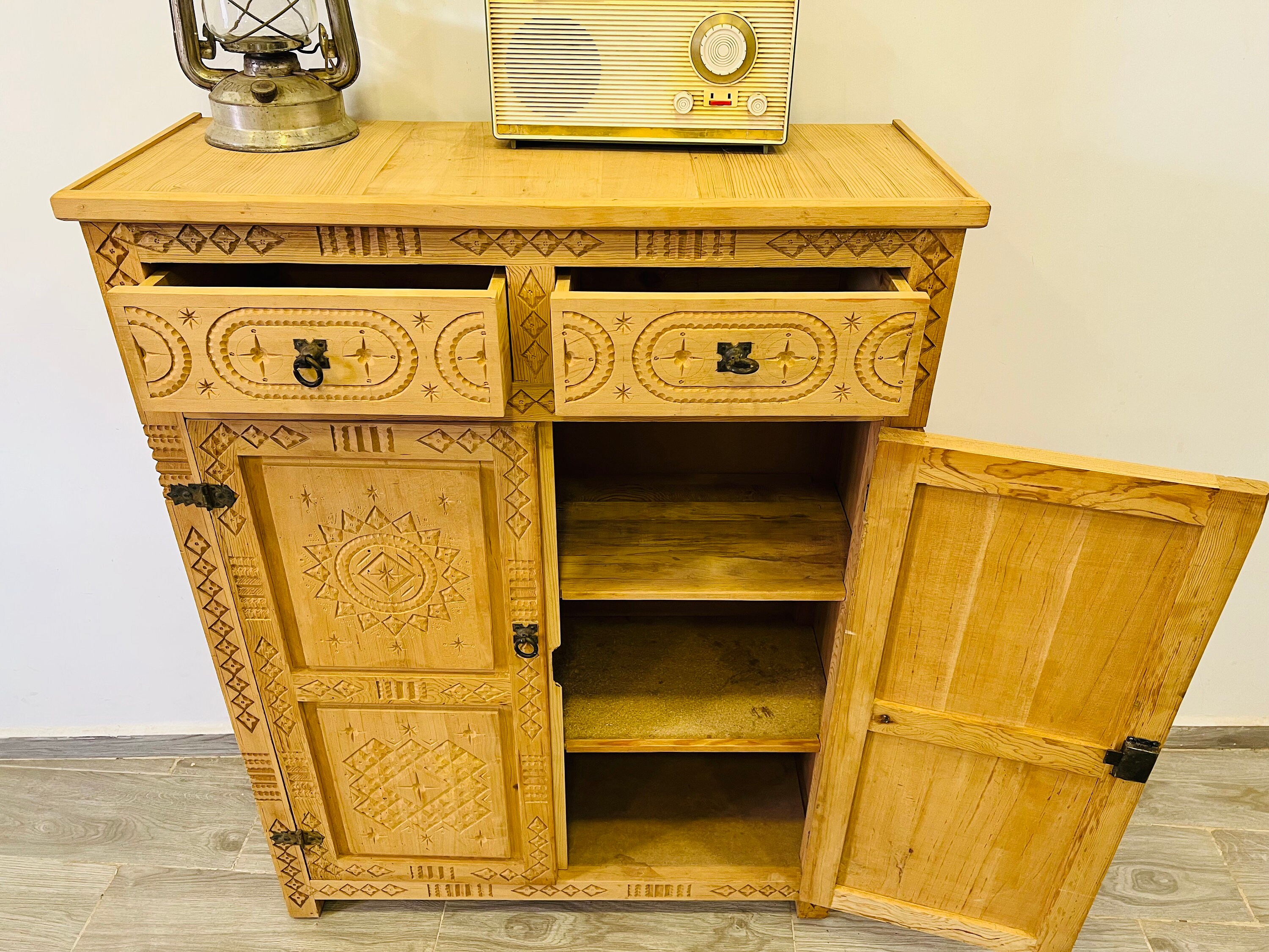 Large Moroccan Berber Stainned Hand carved wooden cabinet 46.8" H x 35.4" W x 14.1" D /FREE GIFT WRAPPING