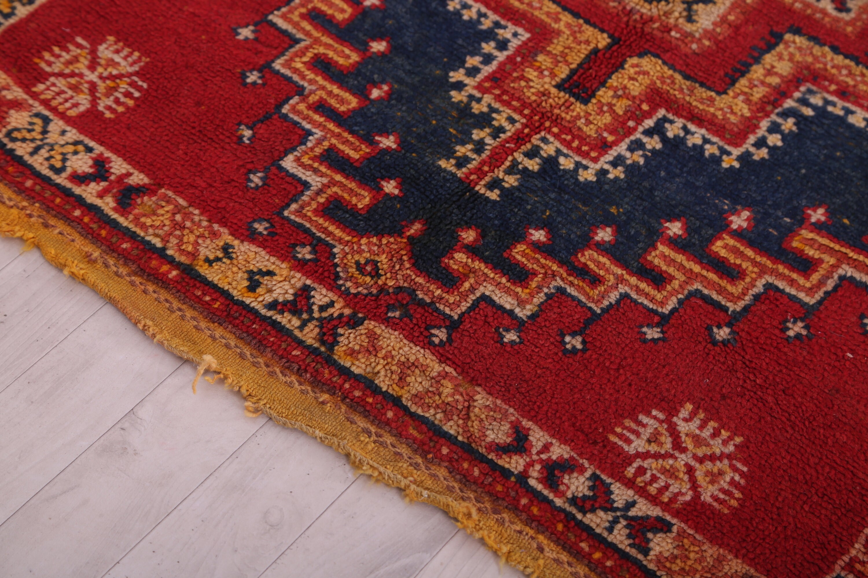 This beautiful rug from High-Atlas Morocco was made by Berber women with naturally dyed wool, which means this carpet is 100% natural.
