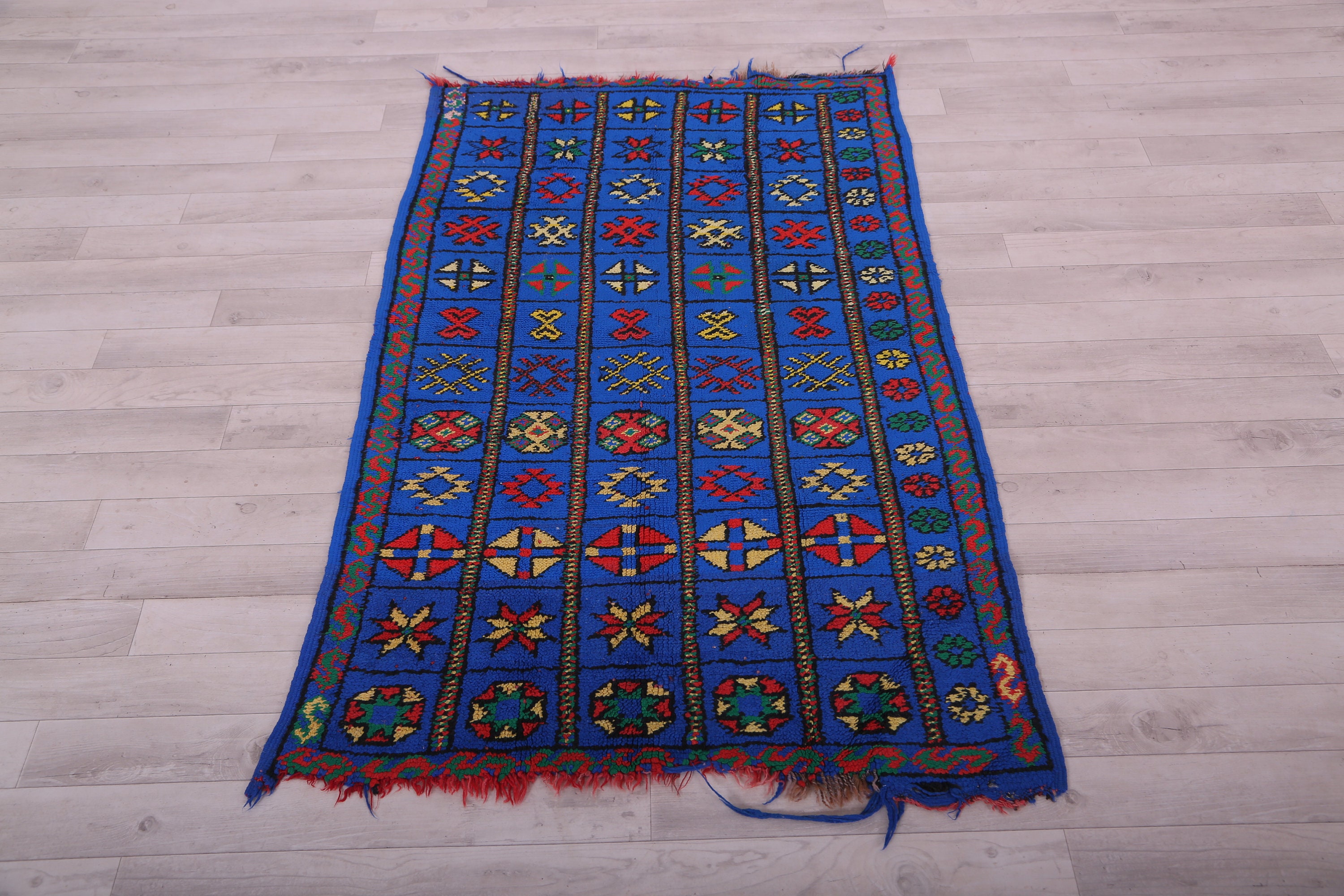 Blue moroccan rug, rugs for living room, area rug, vintage berber rug 4.3x2.7FT