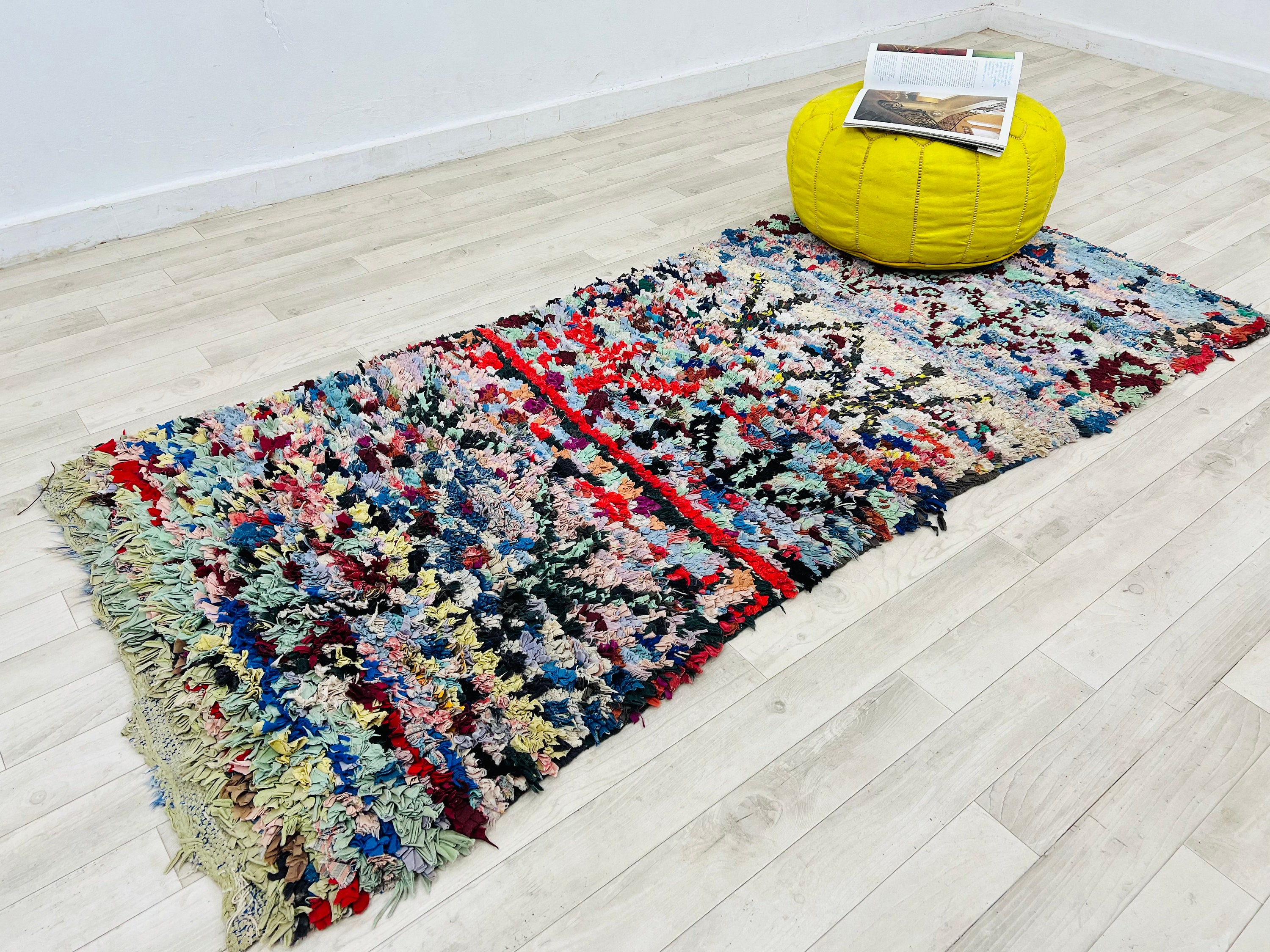 Moroccan authentic wool, berber rug, area Boucherouite rug,Handmade carpet 6.4ft x 2.7ft